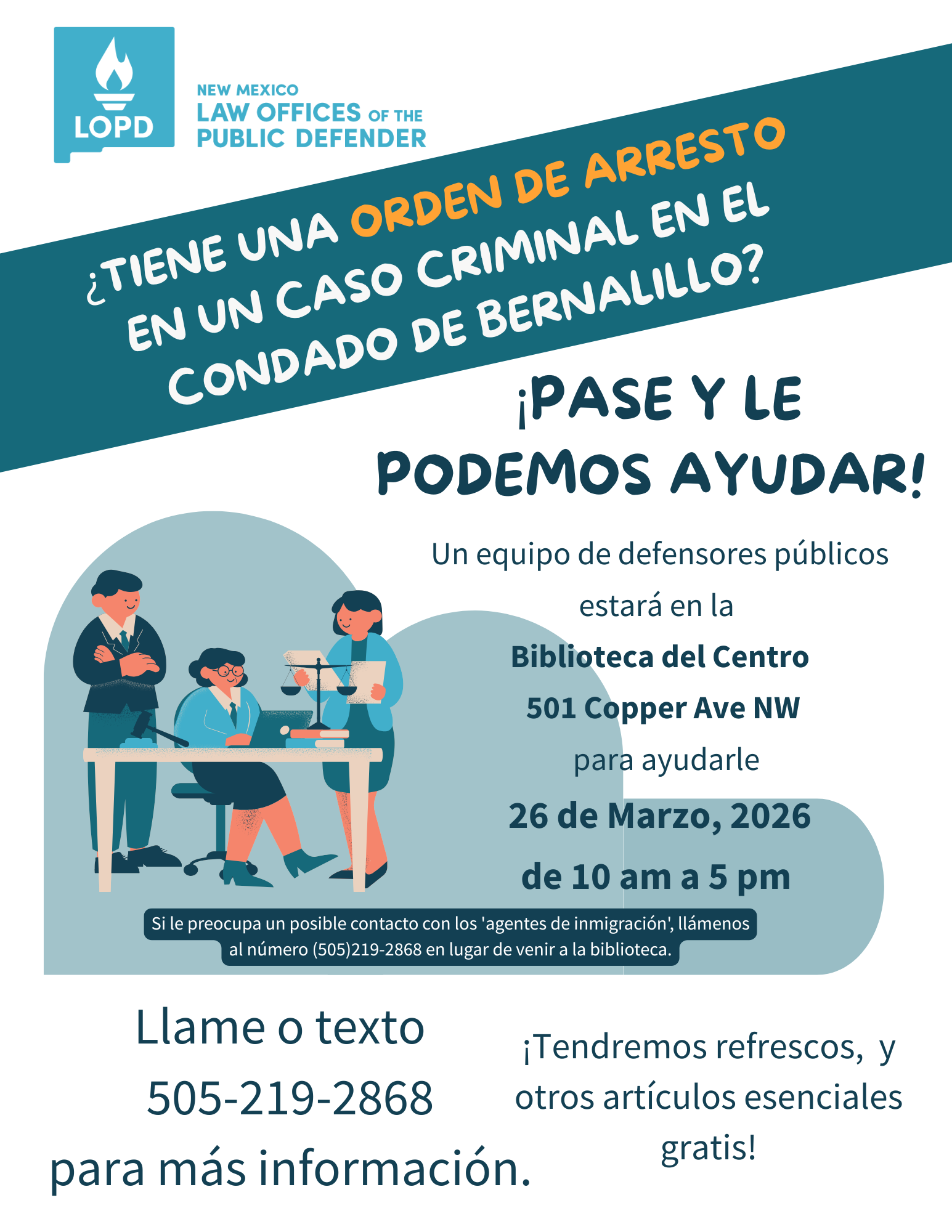 Si le preocupa un posible contacto con los ‘agentes de inmigración’, llámenos al número (505)219-2868 en lugar de venir a la biblioteca.