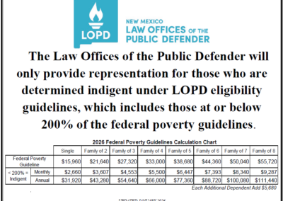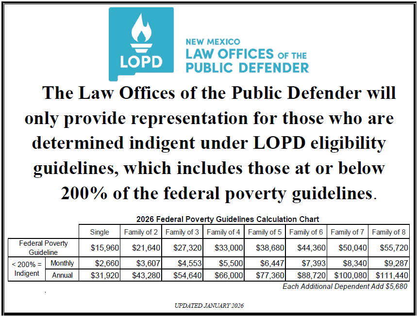 If you are facing charges in a county in which there is not an LOPD office, the court will appoint an attorney for you and should provide contact information for them. You can call any LOPD office for help contacting your assigned attorney.